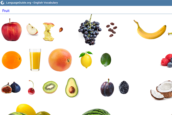 Learners can listen to the pronunciation and see the spelling easily with simple pictures. Site only offers English.